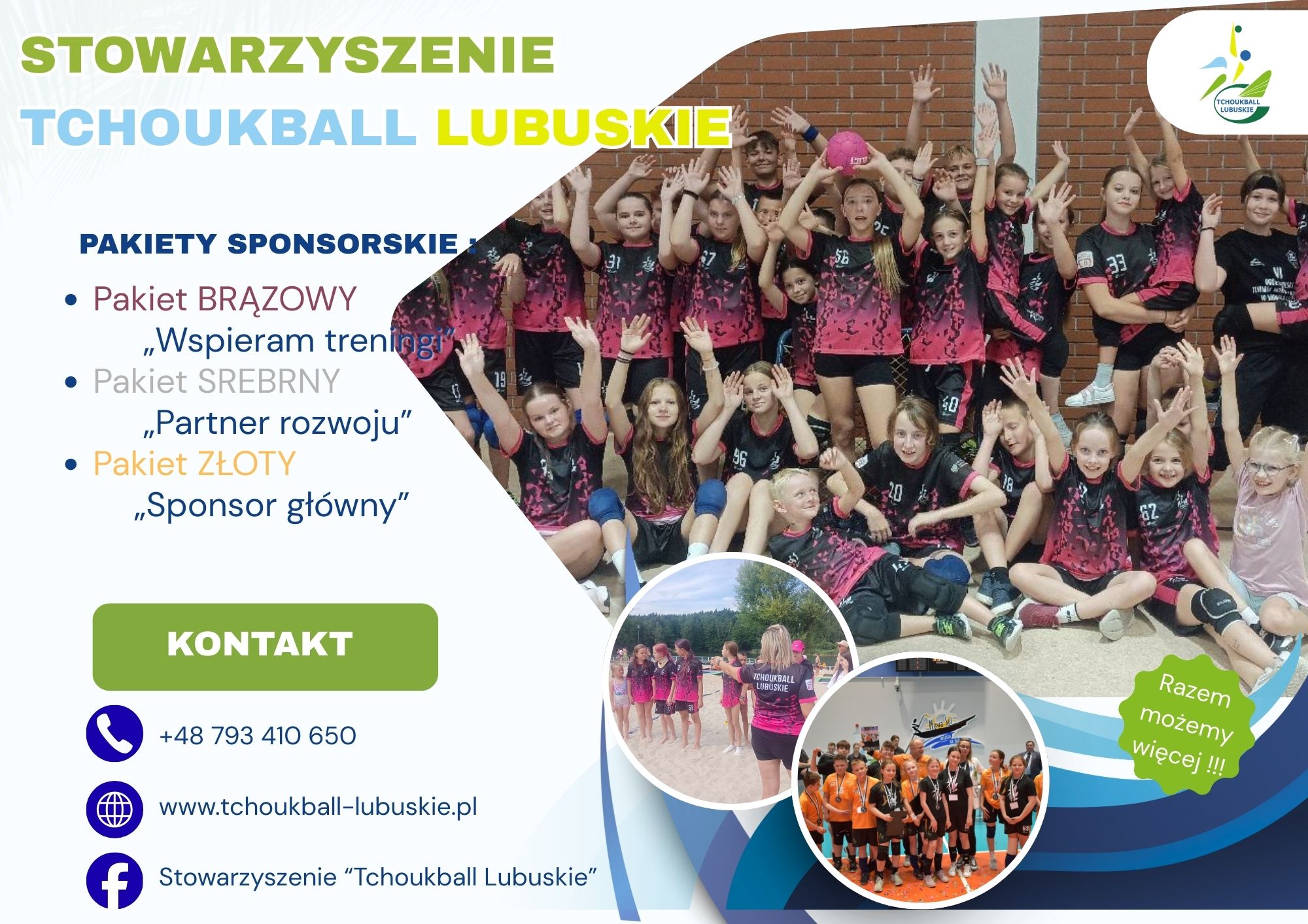 Stowarzyszenie Tchoukball Lubuskie rozwija tchoukball w regionie województwa lubuskiego – szkolimy zawodników, organizujemy treningi i promujemy sport fair play wśród dzieci, młodzieży i dorosłych. Szukamy sponsora, który pomoże nam w dalszym rozwoju działań oraz w reprezentowaniu Polski na arenie międzynarodowej.